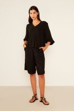 A Blusa Elástico Mangas é uma peça que combina elegância e leveza em uma modelagem solta. Com um caimento fluído e comprimento alongado, o decote em V confere delicadeza. As mangas longas e volumosas com detalhe de elástico nos punhos criam um acabamento drapeado, que adiciona um toque moderno e sofisticado. A ausência de fechamento garante um visual minimalista e descomplicado, ideal para ser usada tanto para dentro da calça ou saia, quanto solta. É a peça perfeita para compor looks casuais e elegantes.