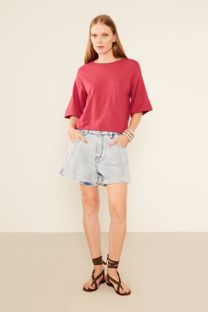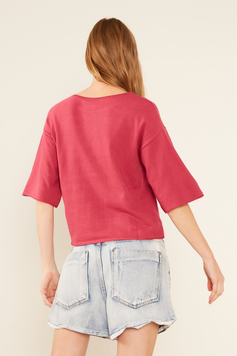 Blusa Tricot Manga Curta - Vermelho Cherry