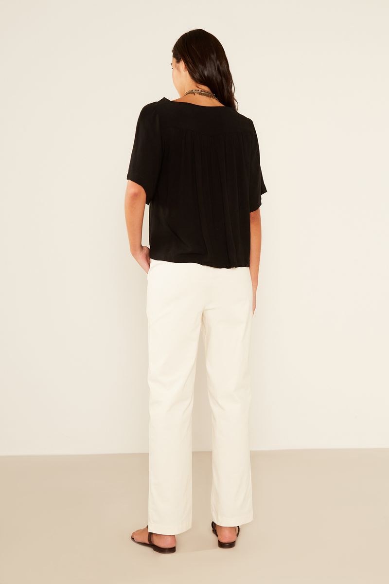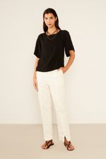 Descubra a versatilidade da Calça Sarja Abertura Boca. Com um comprimento longo e uma modelagem que se destaca pela abertura sutil na barra, esta peça oferece um caimento elegante e contemporâneo. Conta com bolsos faca nas laterais e bolsos chapados na parte traseira para funcionalidade. O fechamento frontal por zíper e botão garante um ajuste seguro e discreto, tornando-a ideal para compor looks sofisticados e modernos.