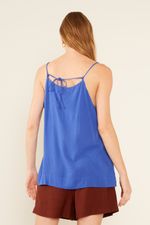 A Regata Casual Fenda é uma peça essencial que combina sofisticação e conforto de maneira impecável. Seu decote em V sutilmente alonga a silhueta, enquanto as alças finas adicionam delicadeza e elegância. A modelagem solta e fluída garante um caimento leve e despojado, perfeito para qualquer ocasião. O detalhe de fenda lateral na barra confere um toque moderno e levemente sensual à peça. Na parte de trás, as alças se encontram para um amarração, criando um detalhe charmoso e ajuste perfeito. Sem fechamentos complicados, a regata é sinônimo de praticidade, ideal para compor um look sofisticado sem esforço.
