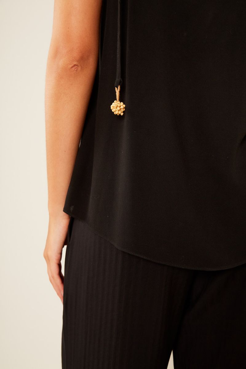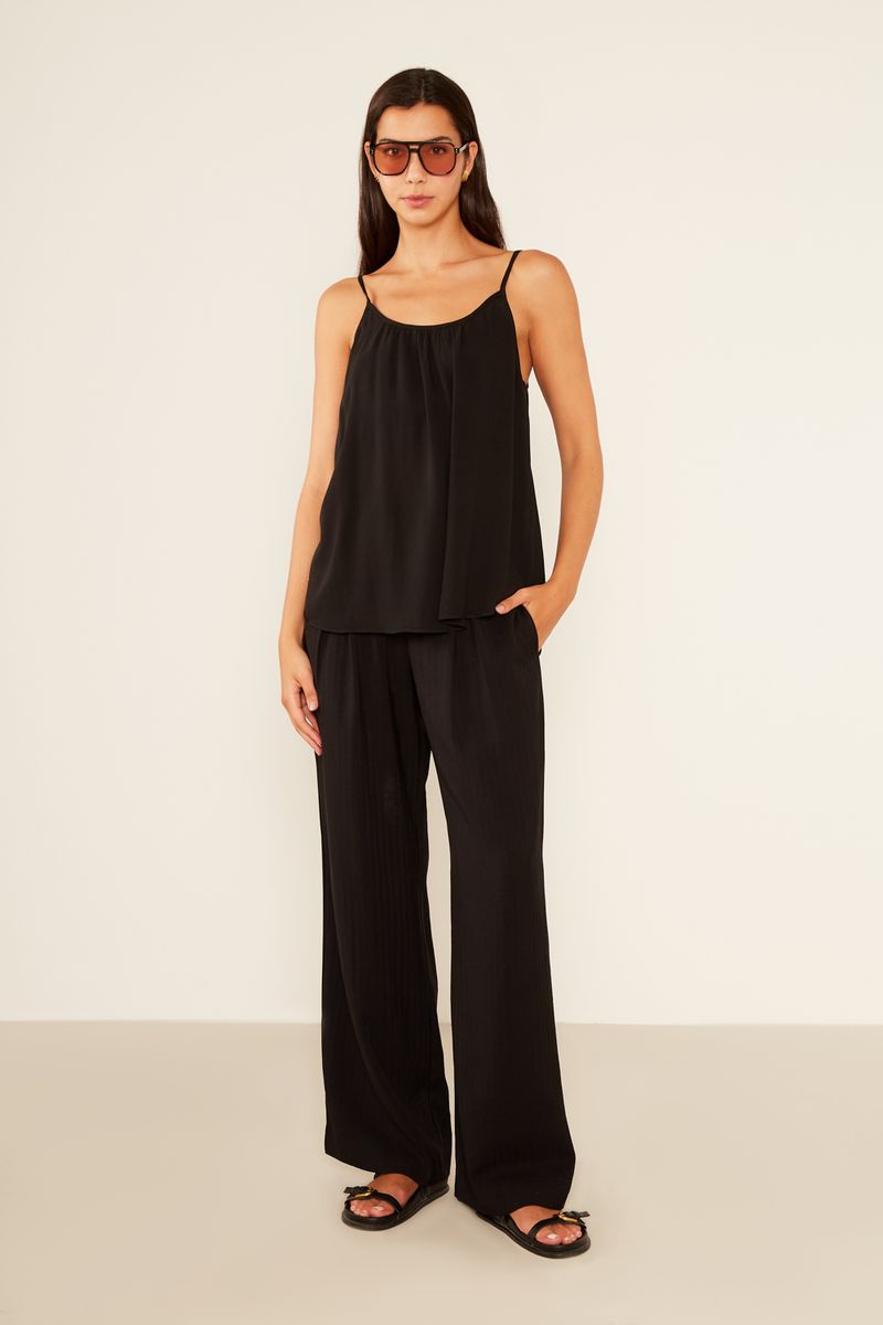 Experimente a fluidez e o charme da Regata Casual Franzido. Com um comprimento versátil, esta peça oferece um caimento leve e descontraído. O decote redondo com detalhe franzido e alças finas confere um toque delicado e elegante. A ausência de bolsos e fechamentos visíveis prioriza um design limpo e minimalista, garantindo conforto e estilo para diversas composições.