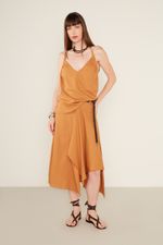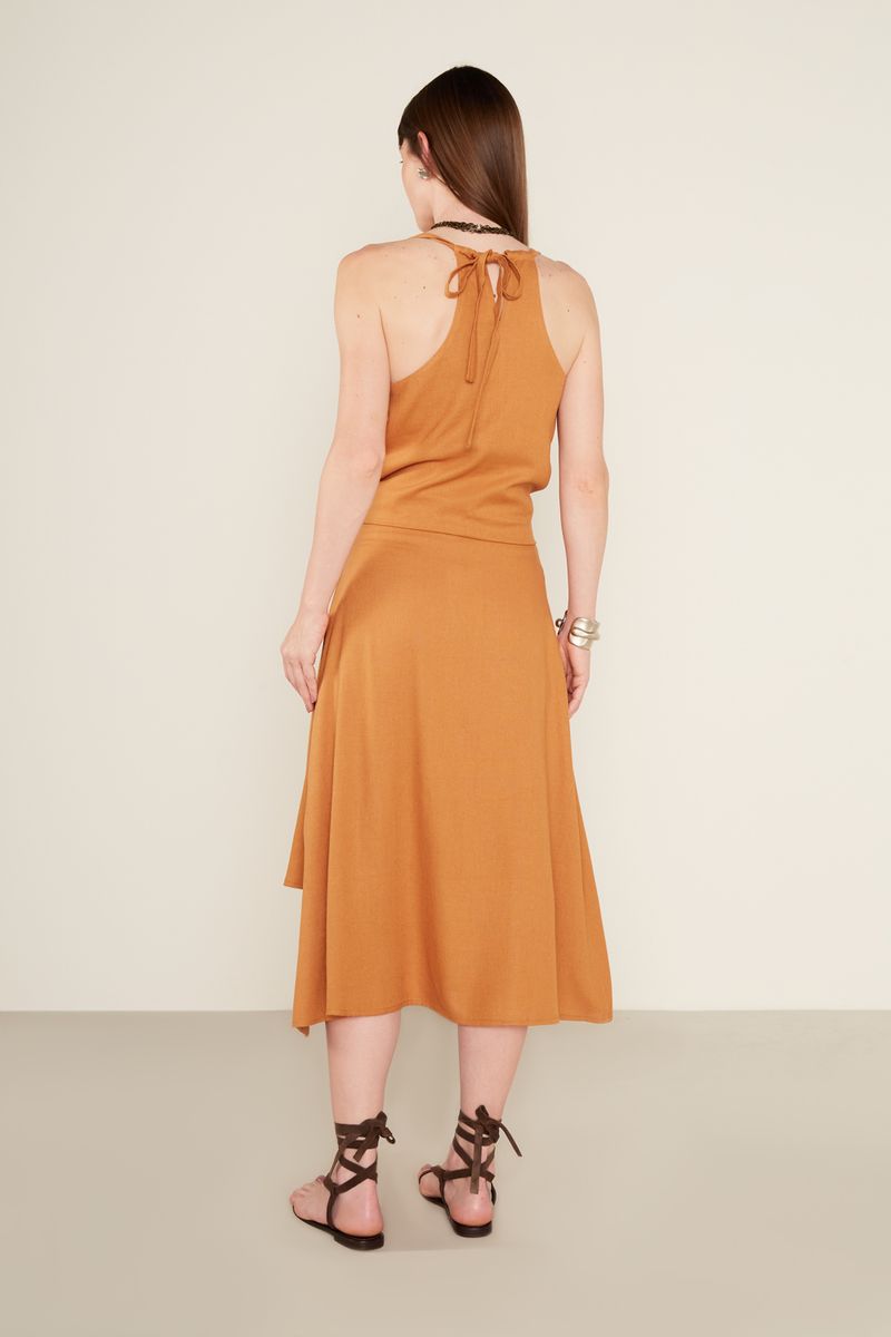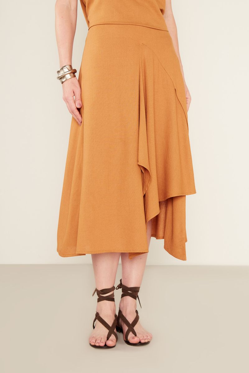 SHOPRoupasSaiasSaia Casual Linho Assimétrica - Bege Nozes