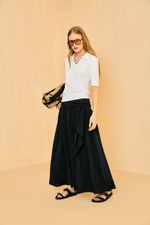 A Saia Malha Pala Amarração é uma peça que combina conforto e sofisticação de forma única. Com seu caimento fluido, a saia longa se destaca pela elegância. A modelagem é cuidadosamente pensada para valorizar a silhueta, com o cós em pala larga que se ajusta perfeitamente ao corpo. O grande charme da peça fica por conta dos cordões de amarração nas laterais, que podem ser ajustados para criar diferentes laços e amarrações, adicionando um toque de estilo e personalidade. Confeccionada em malha de alta qualidade, a saia não possui fechamento e desliza suavemente sobre o corpo. Versátil e atemporal, ela pode ser combinada com blusas ajustadas ou mais soltas.